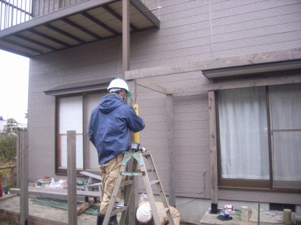 地元阿賀野市にて行っていた木製のフェンスとパーゴラの設置の工事です。材料の刻みから塗装、組み立てまですべてオリジナル。なかなか楽しませて頂きました。