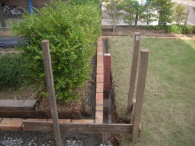 次に芝生との境目に少しアンティーク感のある耐火レンガで花壇を作ります。