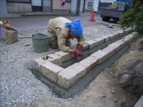 庭石の据え直し。