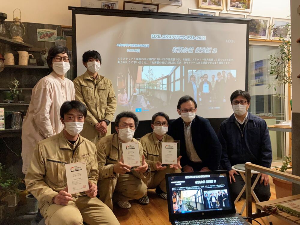 先日、LIXILのエクステリアコンテスト2021のオンライン表様式をスタッフで視聴した様子です。