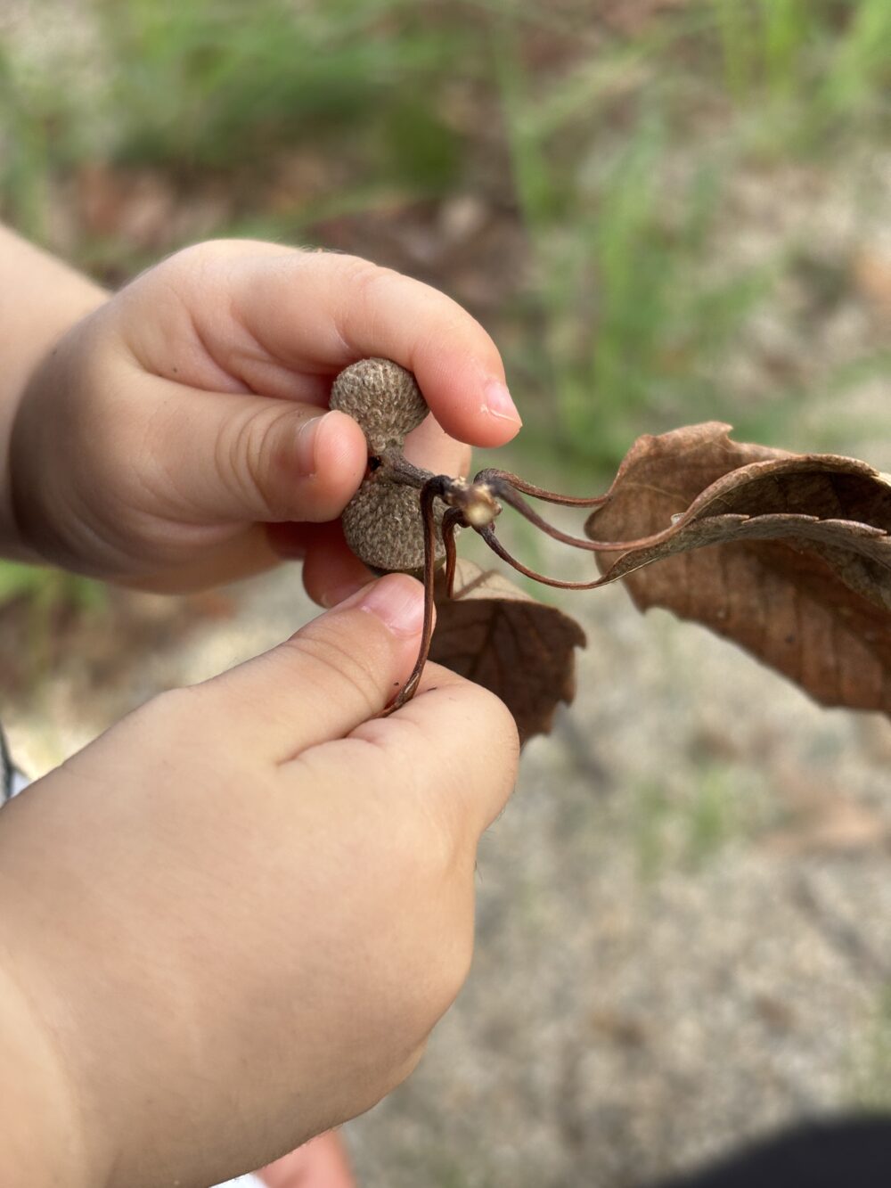 近所の公園へ子供と遊びに行った時に気がついたら手にドングリを持っていました。