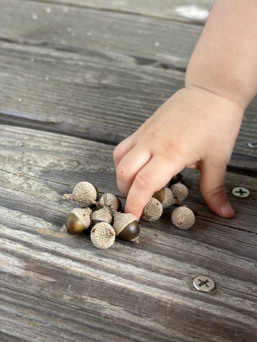 目線が大人の半分以下の高さなので床や地面に落ちているものをたくさん拾ってくれるのですが、ドングリが気に入ったようで見つけては拾ってを繰り返し楽しんでいました。