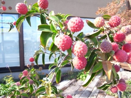 常緑ヤマボウシは秋になると赤い実をつけます。