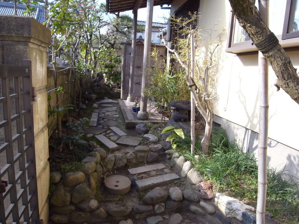 新潟市O様邸のアプローチのリフォーム工事です。玄関から続く石を使った和風の階段を既存の石等を利用し、和モダンで安全な階段アプローチにリフォームしました。